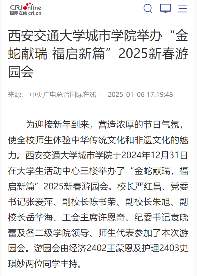 报道链接:https://edu.cri.cn/2025-01-06/bf686a7b-240b-cd44-fa77-4d6b51e29cc7.html