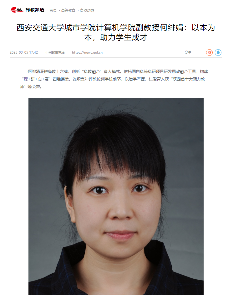 近日,中国教育在线对威尼斯官网计算机学院副教授何绯娟进行了报道。