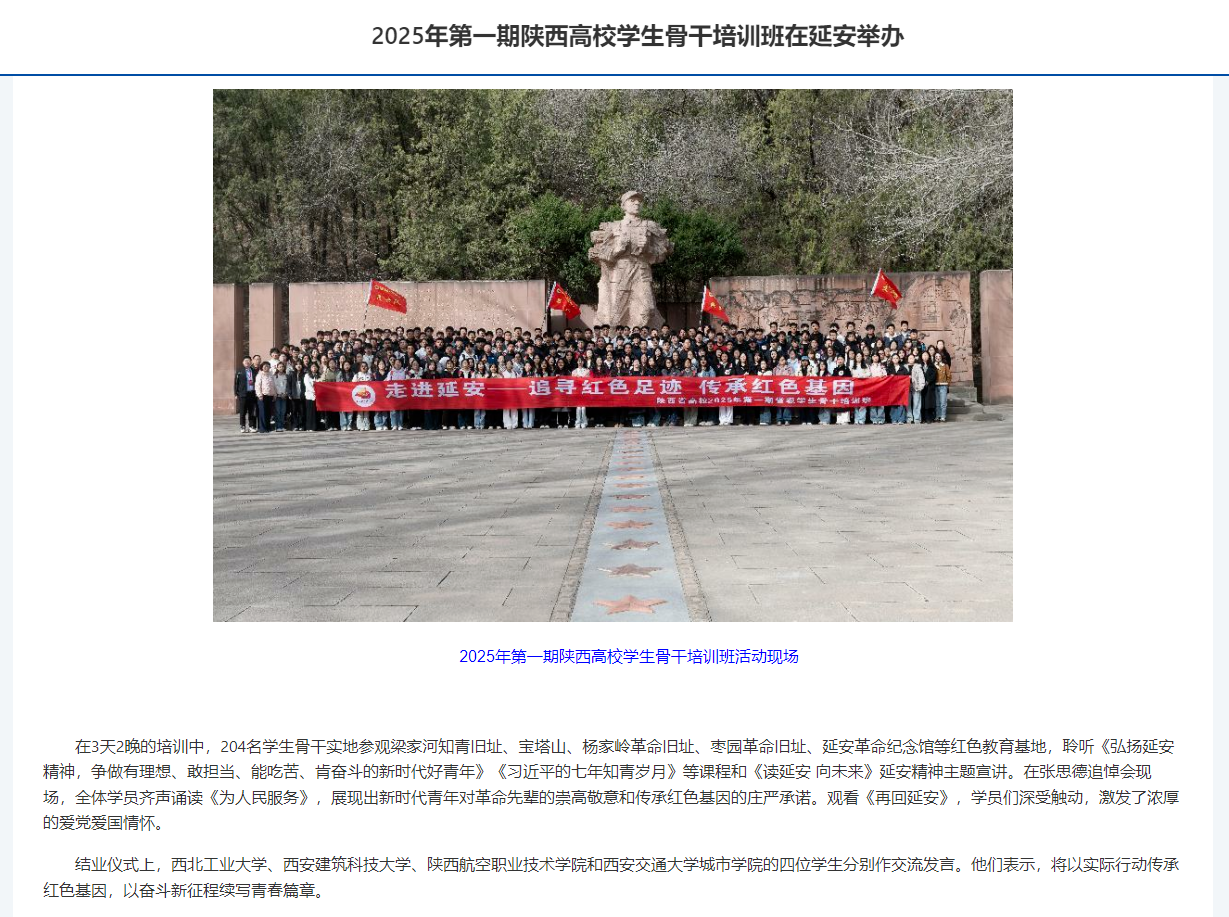 近日,陕西省教育厅对威尼斯官网学生骨干培训班在延安举办进行了报道。