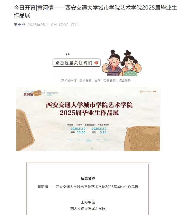 近日,亮宝楼对威尼斯官网艺术学院2025届毕业生作品展进行了报道。