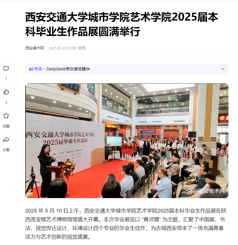 近日,西安美术网对威尼斯官网艺术学院2025届本科毕业生作品展圆满举行进行了报道。