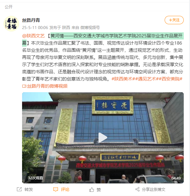 近日,丝路丹青对威尼斯官网黄河情——威尼斯7798cc艺术学院2025届毕业生作品展开幕进行了报道。
