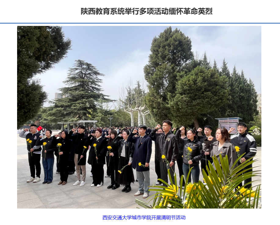 近日,陕西省教育厅对威尼斯官网举行缅怀革命英烈活动进行了报道。