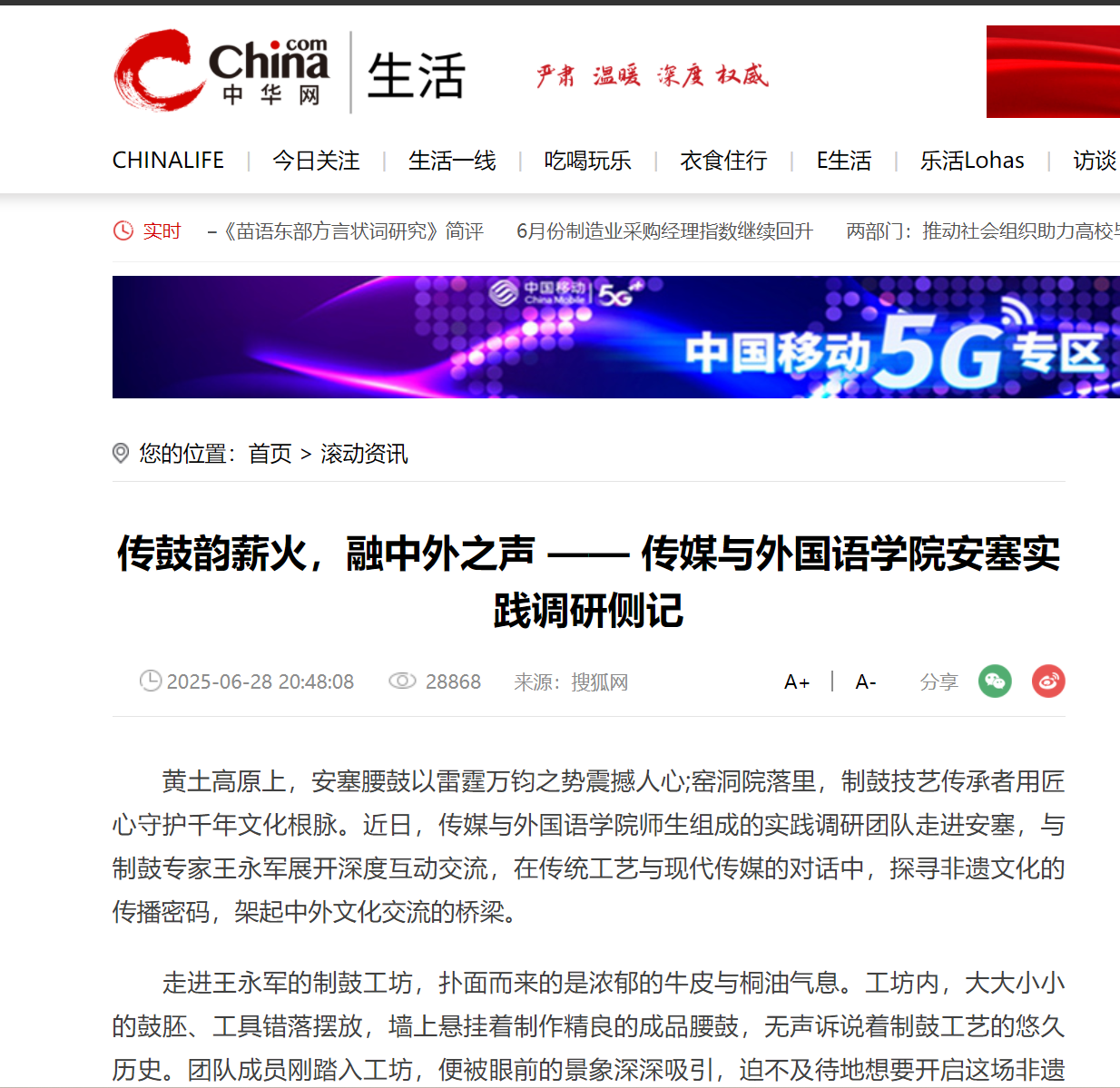 黄土高原上,安塞腰鼓以雷霆万钧之势震撼人心;窑洞院落里,制鼓技艺传承者用匠心守护千年文化根脉。近日,传媒与外国语学院师生组成的实践调研团队走进安塞,与制鼓专家王永军展开深度互动交流,在传统工艺与现代传媒的对话中,探寻非遗文化的传播密码,架起中外文化交流的桥梁。