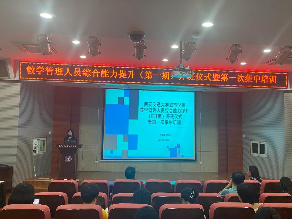 为加强教学管理队伍建设,提高教学管理人员的综合素质和业务能力,更好地服务学校教学管理和教学改革创新实践,教学服务中心于9月21日上午组织开展了综合能力提升(第1期)开班仪式暨第一次集中培训。此次培训由教学服务中心主任唐玉海主讲,常务副主任袁晓蕾主持,各教学单位教学管理人员、教学服务中心全体人员等50余人参加首次培训。