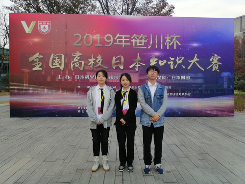 由南京大学和日本科学协会共同主办、日本财团特别赞助的2019年“笹川杯”全国高校日本知识大赛于11月15日至17日在南京大学举办。来自全国114所大学的近500名师生组队参与了此次大赛。西安交大威尼斯7798cc外语系日语专业张佳琳、罗雅乔、赵伊寒同学参赛并获得优秀团体奖,樊华老师获得优秀指导老师奖。