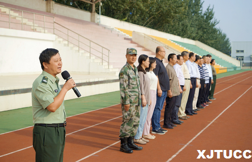 首先,冯民柱书记发表慰问讲话,他表示了对全体承训教官以及指导员老师辛苦付出的感谢,对全体参训学员刻苦努力的肯定,并鼓舞参训学员在接下来一周的时间里,再接再厉,超越自我,发掘自身潜力,圆满完成此次军训。接着,学院领导及各系领导一起为承训教官代表、指导员代表以及学生代表发放慰问品。最后,军训团肖文杰团长讲话,他代表全体承训教官感谢学院对他们热情的关心与周到的保障,也感谢指导员老师们对教官工作的支持,在之后的军训工作中将继续坚持以人为本,严格要求,科学施训,确保军训任务的圆满完成。
