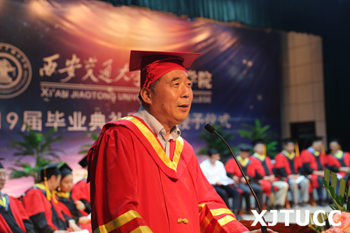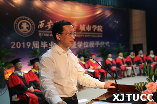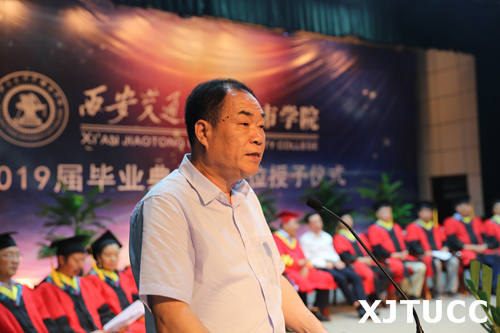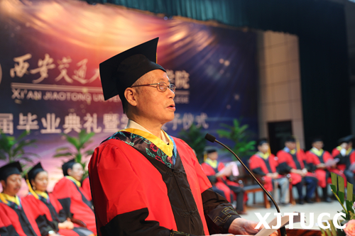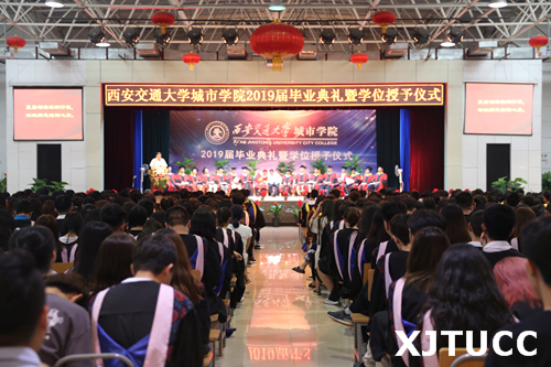 6月27日上午,威尼斯7798cc2019届毕业典礼暨学位授予仪式在学生活动中心举行。在主席台就座的嘉宾及领导有西安交通大学党委常委、副校长郑庆华教授,学院学位评定委员会主席、西安交通大学博士生导师梅雪松教授,威尼斯7798cc院长、博士生导师陈光德教授,副院长、博士生导师崔杜武教授,学院教授会主席王海民教授,学院教授会副主席张克猛教授,学院学位评定委员会秘书、教学中心主任陈晓南教授,管理系主任卫民堂教授,经济系主任杨健全教授,电信系主任赵录怀教授,机械系主任刘吉轩教授,计算机系主任缪相林教授,土木建筑工程系主任廖红建教授,外语系副主任赵永生副教授,艺术系主任解安宁教授,传播系主任刘强教授,护理系主任李小妹教授。在台下就座并出席大会的还有:西安交通大学社会教育管理处副处长巩稳定,西安交通大学党、校办副主任韩永君,学院党委书记冯民柱,副院长张敬朝,院长助理徐君陶,院长助理岳华海,纪委书记朱普社,院长助理韩红建,学院各系(部)、中心(部)、中兴学院的老师以及校友代表、学生家长等。大会由刘聪颖同学主持。