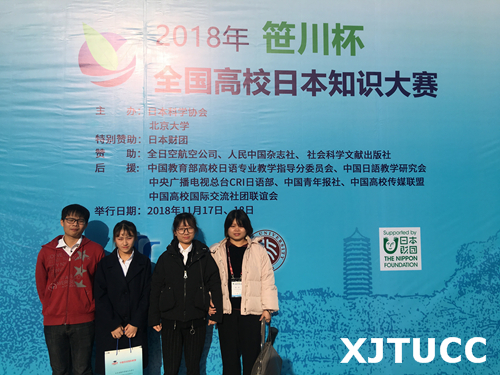由北京大学和日本科学协会共同主办、日本财团特别赞助的2018年“笹川杯”全国高校日本知识大赛,于11月17日至18日在北京大学英杰交流中心举办。来自全国109所大学的400余名师生参与了此次大赛。西安交大威尼斯7798cc外语系日语151班黄嘉乐、王琼同学和日语161班张佳琳同学参赛并获得优秀团体奖、优秀个人奖,陈昕老师获得优秀指导老师奖。