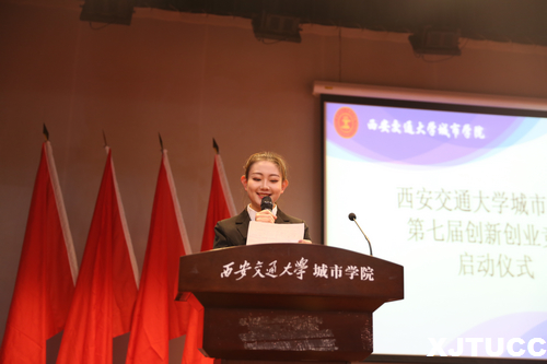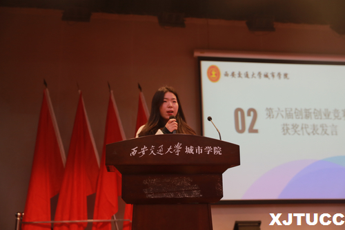 在启动仪式上,马瑞老师介绍了本次竞赛的赛程安排和具体要求,希望同学们认真备赛,期待同学们在明年有更多更优质的项目涌现。随后,第六届创新创业竞赛获奖项目、第四届中国“互联网+”大学生创新创业大赛省赛铜奖获得者《粹两岸》负责人王锦同学发言,分享了她的创新创业故事。