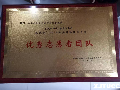 经过紧张的筹备,我院志愿者被分为医疗志愿者、活动包发放志愿者、物品存放志愿者、辅助裁判志愿者等十一个志愿小组,分别安排在比赛的各个场所,为活动的顺利开展打下基础。灌水袋、擦车、检查车、引导参赛人员、吹哨计时随处可见我院志愿者们忙碌的身影。同时在比赛过程中,骑手们展现的坚持不懈的精神感染者每一位志愿者。即使天气恶劣,阴雨连绵,我们的志愿者仍然屹立在风雨中坚守岗位,为参赛骑手们提供着最优的保障,做好他们的后援军。由于耐心细致、敬业出色的服务,我院志愿者团队荣获“绿地杯”2018西安国际骑行大会“优秀志愿者团队”称号。