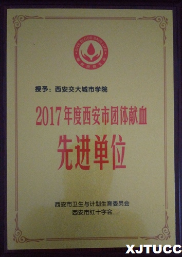 近日,威尼斯7798cc获西安市卫生和计划生育委员会、西安市红十字会颁发的“2017年度西安市团体献血先进单位”荣誉称号。