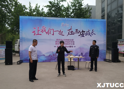 为深入学习贯彻党的十九大精神,纪念五四青年节,弘扬爱国主义精神,深化户籍新政“三进”活动,5月4日,学院保卫部联合公安经开分局和市局政治部组织举办了主题为“让我们一起在西安成长”的宣传活动,并向在校师生发放户籍新政宣传品,现场解答师生们有关落户西安的问题和流程。学院副院长张敬朝,市局政治部宣传处副处长刘智,公安经开分局副局长王世军,纪委书记许传彬,全国十九大代表、“时代楷模”、西安市公安局新城分局韩森寨派出所副所长汪勇,政治部警官艺术团成员,市局7名新警“成长之星”代表,经开分局政秘、户政、国保、尚稷路派出所干警,党政服务中心副主任姬志国、学院保卫部部长陈涛等师生代表共计500余人参加了本次活动。