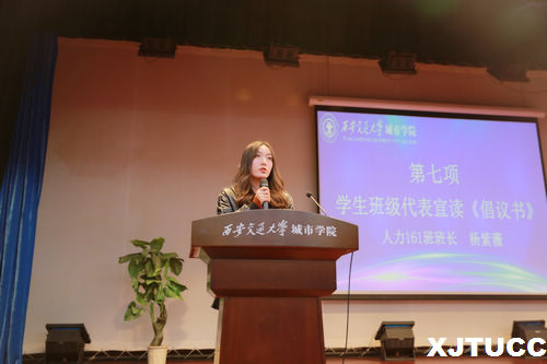 护理系副主任王梅芳在发言中指出,我们要认识学风建设就是建设学院的人文精神、人文内核,要一直坚持下去。她特别强调学风建设不能空喊口号,要把口号转化为行动力,融入师生的教学和学习当中。班主任代表外语系胡婷老师在发言中指出,抓学风重中之重即抓课堂问题,教师应当关注、关爱学生,要亲身参与和融入到学生的学习和生活当中,与学生经常互动,做好家校联系工作,学校、教师、家长三方共抓学生学业。辅导员代表廉宇婷、学生组织代表王镜茜同学、学生代表张欢同学分别就学风建设发言。人力161班班长杨紫薇同学宣读了《创建自律自强团结互助学风优良班级倡议书》。
