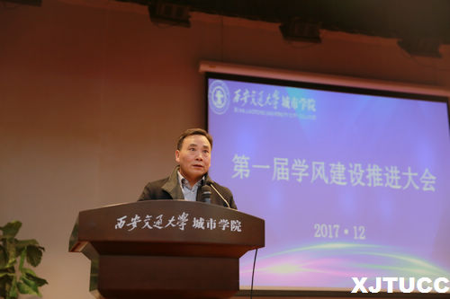 陈光德院长作总结讲话。陈院长肯定了本次学风建设推进大会的重要意义,指出学院对于本次大会做了大量的准备工作,参与人员覆盖全院师生,达到了办会的预期效果,并对接下来的学风建设工作提出要求。陈院长指出,学风是大学文化的核心和灵魂,强调建设优良学风,需要每一个个体、每一个群体先从自身来做起。今后学院将加强师资队伍建设,教师要改善教学方式,增强与学生的交流和互动。在管理上,学院要加强学生管理工作,严肃考风考纪,加强校风校纪建设。陈院长最后指出,学风建设与每个人密切相关,全院师生要从每一件小事做起,形成长效机制,坚持常抓不懈!