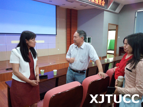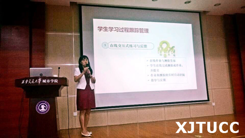 吴教授首先向大家展示了西安交通大学计算机基础MOOC建设的成果,从主体资源、设置课程团队、设置课程结构、评分标准等多个方面介绍了已开设MOOC的主要功能区,并分享了自己的MOOC建设体会。接着,她以应用案例的形式,从多教学环节交叉融合方案、混合教学模式下的角色和任务、主动学习能力培养、混合教学设计中的关键点、混合教学效果等多个方面介绍了基于Spoc的“多环节交叉融合”混合教学模式。在此基础上,吴教授从为学生提供在线交互式练习与学习状况预警、为教师预测学生整体学习趋势的角度强调了学习过程跟踪与效果评价的重要性。整场报告观点新颖、举例生动,青年教师们受益匪浅。