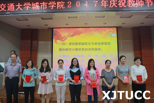 陈光德院长发表了讲话。他首先代表学院向辛勤耕耘、默默奉献在育人岗位上的全体教职员工致以节日的问候!并向获得先进称号和做出突出成绩的教职员工致以诚挚的祝贺!陈院长指出,把学院建设成国内一流、国际知名应用型大学的核心力量是教师,学院把建设一支结构合理、爱岗敬业、素质优良、敢于拼搏的师资队伍作为重要目标之一。全院上下经过不断努力,各项工作已经取得了一些成效。他希望全体教职员工要明确自身存在的差距,对未来的教学科研工作有思考、做规划。陈院长对教职员工提出三点期待:一是教书育人、守住底线,除了教给学生知识外,以高尚的师德影响学生;二是爱岗敬业,不辱使命,不断反思自己是否是一名合格的教师,学高为师,身正为范;三是志存高远,追求卓越,继承交大优良传统,争做“名师”,为学院建设国内一流、国际知名高水平应用型大学办学目标的实现做出贡献!