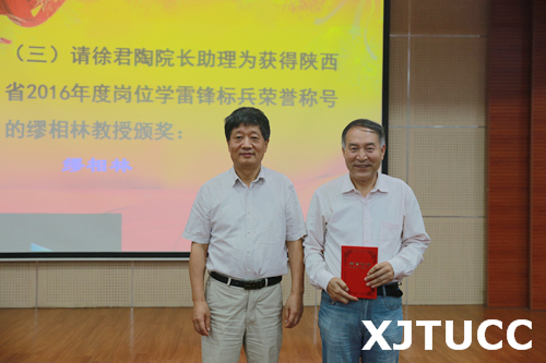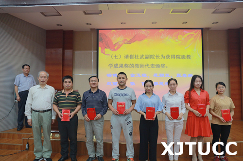 在庄严的奏国歌仪式后,崔杜武副院长宣布受表彰人员名单。陈光德院长、崔杜武副院长、张敬朝副院长、徐君陶院长助理、工会王海民主席、纪委朱普社书记分别为受表彰人员颁奖。教师代表解茹玉、学生代表李洋分别发言。