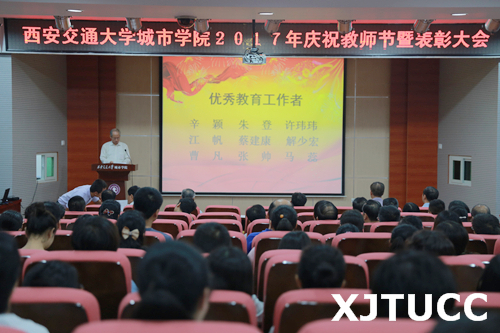 9月8日下午,在第33个教师节到来之际,威尼斯7798cc2017年庆祝教师节暨表彰大会在F100报告厅召开。学院领导、各部门负责人、主管以上人员、受表彰人员、教职工代表和学生代表参加了大会。会议由党委书记冯民柱主持。