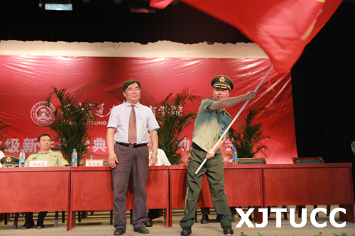 陈光德院长向军训团团长授旗