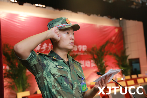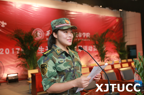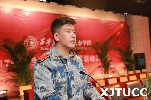 三营十一连的秦泽林同学代表全体学员郑重承诺,定会以积极的态度投身于军训之中,一切行动听指挥,认真操练,虚心学习,努力完成规定的军训任务。承训教官代表王娟娟在发言中表示,教官们将坚持科学施训、文明带兵,以情带兵、以身作则,绝不辜负领导的期望和信任。