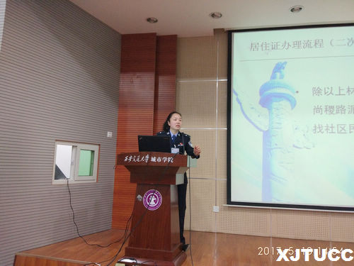 5月10日下午,受学院邀请,公安西安经开分局尚稷路派出所副所长任友宁、社区民警王振拓、户籍民警陈赵静来我院开展西安市户籍新政宣讲暨校园安全防范工作报告会。学院副院长张敬朝、党政中心副主任姬志国及各系辅导员老师出席报告会,报告会由学院保卫部部长陈涛主持。