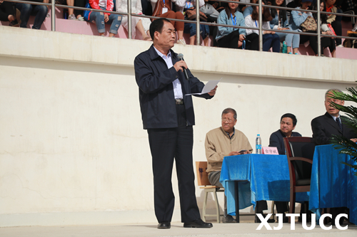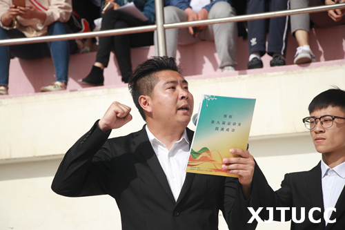 陈光德院长宣布本届运动会开幕。运动员、裁判员和各代表队逐一入场。在庄严的升国旗仪式后,冯民柱书记致开幕词。冯书记对本届运动会的召开表示热烈的祝贺。同时,他对为本次运动会召开积极筹备的老师和同学们表示衷心感谢。他希望全体运动员充分发扬体育精神,斗志昂扬,拼出成绩,赛出风格,让学院学生的风采迸发在赛场上的每个角落;希望全体裁判员、教练员和工作人员忠于职守,树立安全第一意识,热情服务意识,严守规则意识,做到公正裁判、热情服务,为各项竞赛创造良好的工作氛围,保证竞赛的顺利进行。希望各系部和各班级加强管理,特别是没有比赛项目的同学,要服从大会管理,争当文明观众;要热情为同学服务,为运动员摇旗呐喊,加油助威,争创文明班级。随后,运动员代表和裁判员代表分别上台宣誓。