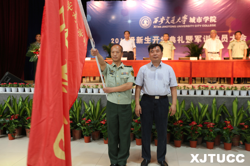 陈光德院长向军训团团长授旗