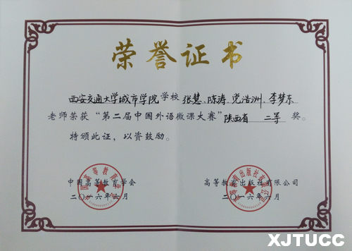 近日,由西安交大威尼斯7798cc外语系指导并推荐,学院张慧、陈涛两位老师和党浩洲、李梦东两名学生制作的微课作品《英语微写作之段落一致性》荣获第二届中国外语微课大赛陕西省赛区二等奖。