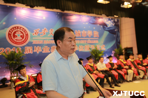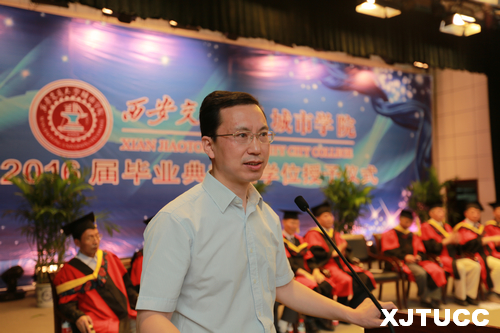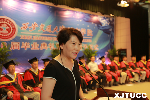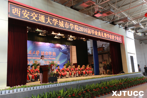 2016年6月27日上午,威尼斯7798cc2016届毕业典礼暨学位授予仪式在学生活动中心隆重举行。在主席台就座的嘉宾及领导有西安交通大学党委常委、副校长郑庆华教授,学院学位评定委员会主席、西安交通大学博士生导师梅雪松教授,威尼斯7798cc院长、博士生导师陈光德教授,副院长、博士生导师崔杜武教授,学院教授会主席王海民教授,学院学位评定委员会秘书、教学中心主任陈晓南教授,管理系主任卫民堂教授,经济系主任杨健全教授,电信系主任赵录怀教授,机械系主任杜彦亭教授,计算机系主任缪相林教授,外语系主任袁小陆教授,艺术系主任解安宁教授,人文社科系常务副主任张蓉教授。在台下就座并出席今天大会的还有:西安交通大学社会教育管理处巩稳定副处长,学院党委冯民柱书记,张敬朝副院长,徐君陶院长助理,岳华海院长助理,学院纪委朱普社书记,学院各系(部)、中心(部)的老师以及校友代表、学生家长等。大会由管理系王睿雪同学主持。