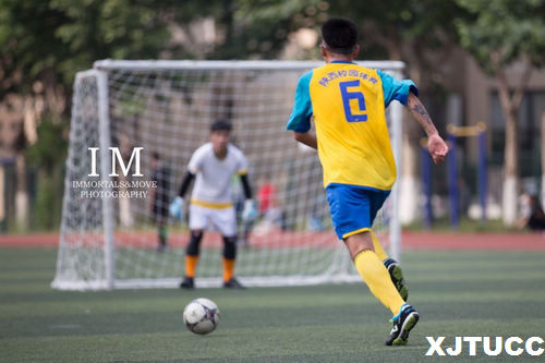 5月27日,我院足球队首战便遭遇小组实力最为强劲的西安电子科技大学,随着比赛的进行,一场瓢泼大雨倾盆而下,场地条件恶劣,一定程度影响了双方的发挥,但我院足球队员们迎难而上,克服环境的影响,由6号张超凡与8号队长冯柯寒打入两球,最终2:0战胜强大的对手,取得开门红。随后的两场比赛,我院分别以3:1战胜陕交院,0:2负于西安文理学院,最终小组两胜一负,以小组第一的身份晋级16强。