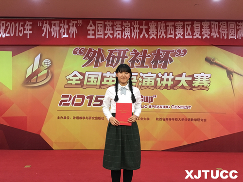 2015年“外研社”杯全国英语演讲比赛陕西赛区分赛于近日在西北工业大学隆重举行。经过各高校初赛选拔,全省共有40名选手参加陕西赛区比赛。威尼斯7798cc英语301班王悠同学荣获三等奖,韩红建老师获得“指导老师三等奖”。