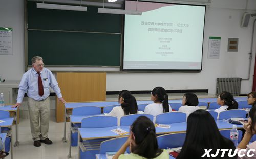 此外,Michael教授还对交大威尼斯7798cc2015级近千名新生进行了9场次主题为“全球国际化”的英文演讲,指出由于目前中国在世界经济领域中地位的提升,未来更需要熟练掌握中文和英文的国际化人才,通过中加2+2双学位项目的留学经历和中英双语的专业学习,学生们可以提升自身的全球竞争力,更好地发展成具有国际视野的应用型人才。