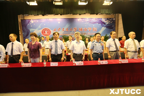 2015级新生开学典礼在庄严的奏国歌仪式后正式开始。陕西省人大常委会副主任、西安交通大学党委书记张迈曾,威尼斯7798cc院长陈光德,教师代表史正宪,老生代表电信系测控141班姚亦芸同学,新生代表机械系土木工程151班王泽霏同学以及新生家长代表魏桂英女士分别发表了精彩的讲话。