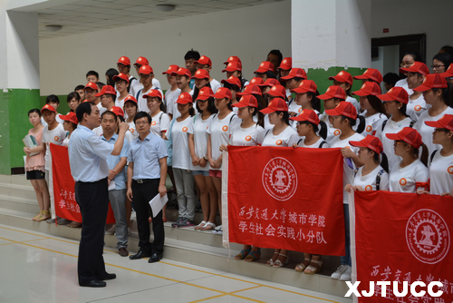党委书记冯民柱、学生服务中心主任张学堂老师向即将奔赴农村、工厂、社区开展志愿服务实践活动的广大同学和各位实践指导教师作了重要讲话。张学堂主任表示开展大学生暑期社会实践活动,是学校落实立德树人,帮助大学生成长的重要途径。参加此次社会实践活动,使命光荣,任务艰巨,相信全体服务队员一定能够出色地完成此次任务。冯民柱书记希望同学们秉承交大城院“励志笃学,求是创新”的校训,投身社会大舞台,在实践中坚定理想信念,在实践中练就过硬本领,在实践中凝聚青春力量,把青春融进祖国的河山,用汗水演绎青春色彩,助力美丽中国梦的实现!