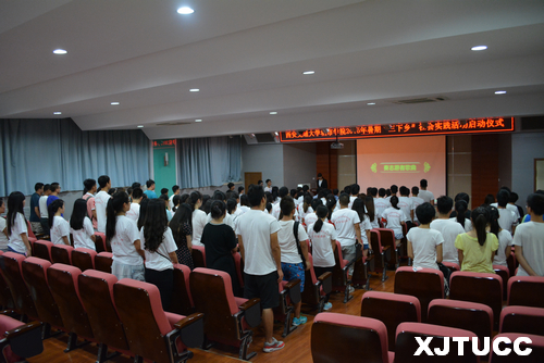 7月13日下午,西安交大威尼斯7798cc2015年大学生暑期“三下乡”社会实践活动启动仪式在教学楼F100会议室举行。学院党委书记冯民柱、学生服务中心主任张学堂、院团委书记曹嘉伟、人文护理外语系团工委书记樊超、经济系团工委书记茹静、计算机系团工委书记刘敏涛、管理系蔡婷、机械系王丽丽等老师以及团委科技实践部干部、实践队志愿者代表共150余人参加了仪式。