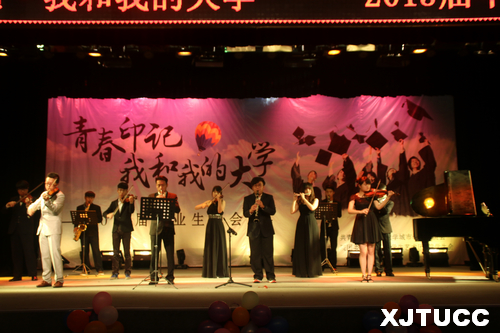 本场晚会为观众带来了民族舞、合唱、相声等形式多样的节目。晚会在一支舒缓的舞蹈中缓缓拉开帷幕。在第一幕“梦开始的地方”中,外语系同学带来的英文歌曲《I am with you》将现场气氛迅速点燃,艺术系管乐团演奏的一曲《暗香》带观众走进管弦乐婉转悠扬的世界;在第二幕“我的青春印记”中,舞蹈团的民族舞《相和歌》以及民乐团的《雨碎江南》又带观众们领略了中国浓厚的古典文化;“路人”乐队用一首《不能说的秘密》带领着观众走进晚会的第三幕“让梦想起航”。吴天尧同学一首《掌声响起来》唱出了所有毕业生即将离别母校的心声,将晚会的气氛推向了高潮。其中的深情祝福,深深感动着毕业生及老师们。毕业生们在舞台上流露出对母校的不舍,流露出对未来的憧憬,用表演的形式为他们的大学生涯画上圆满的句号。
