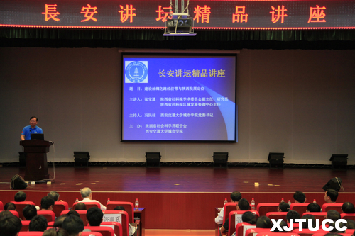 张宝通主任以“建设丝绸之路经济带与陕西发展定位”为主题,从一带一路伟大构想的提出背景、意义入手,阐述了陕西作为丝绸之路经济带新起点以及西安作为丝绸之路经济带中心的发展定位,语言生动,案例详实,精神饱满,使在座师生获益良多。