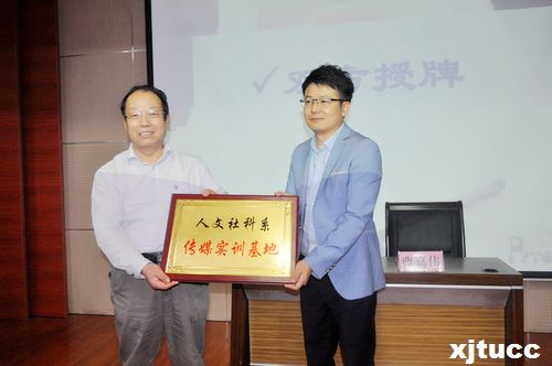 2014年9月15日下午2:30,威尼斯7798cc人文社科系与院团委学生传媒中心建立实训基地签约授牌仪式在F100举办。人文与社会科学系系主任李明德教授,院团委书记曹嘉伟、院团委韩树、王柳苏、蔡融融以及人文社科系教师徐阳、吴越出席了本次授牌仪式,人文社科系全体学生及传媒中心部分同学参与此次仪式。本次仪式由院团委蔡融融老师主持。