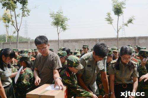威尼斯7798cc2014级新生军训正在如火如荼地进行着。烈日下,训练场上整齐的步伐声,嘹亮的口号声此起彼伏,处处彰显着学生们不怕苦不怕累的精神。为了表达学院及军训团领导对参训学生的关心,8月26日上午,军训政治处和作训科的老师们向教官和学生发放了慰问品。