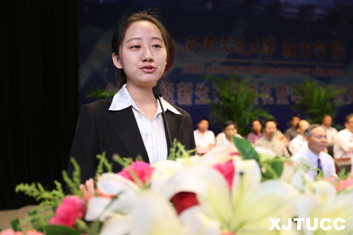 2014级新生开学典礼在庄严的奏国歌仪式后正式开始。西安交通大学校长助理郑庆华教授、威尼斯7798cc院长陈光德教授、教师代表史冬梅教授、新生家长代表康江辉先生、老生代表李锐杰同学以及新生代表赵博文同学分别发表了精彩的讲话。