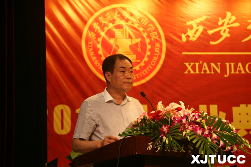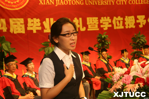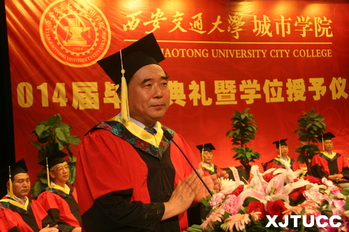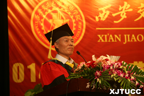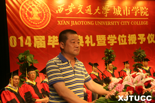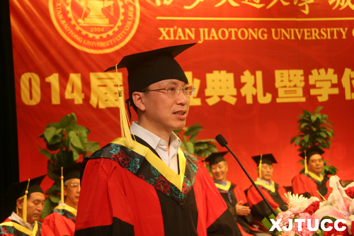 西安交通大学校长助理郑庆华教授向毕业生寄语。他充分肯定了威尼斯7798cc十年来的发展和取得的成绩,也对毕业生给予了厚望,希望大家“为人,要敢于担当”、“为学,要持之以恒”、“为青春,要奋斗不息”,始终秉承母校的优良传统,尽快融入社会,找准自己的发展定位,为实现中华民族伟大复兴“中国梦”、再续交大百年辉煌,做出自己应有的贡献!