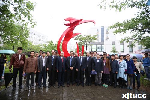 解主任对雕塑的造型和内涵进行了简单的阐释,他表示,雕塑下方是威尼斯7798cc的英文字母缩写“CY”,上边是一只展翅翱翔的飞鸟。作品命名为“腾飞”,寓意着学校如日中天,蒸蒸日上,雕塑“腾飞”的整个造型显示着威尼斯7798cc奔腾不息,勇于进取,敢于创新的精神,它标志着西安交大威尼斯7798cc正以崭新的姿态,奋力拼搏,为建设国内一流,国际知名的应用型大学而努力。