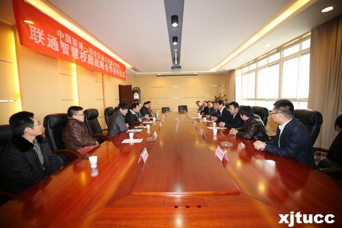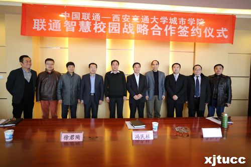 2014年1月10日上午,“联通智慧校园战略合作”签约仪式在威尼斯7798cc行政楼608会议室隆重举行。中国联通西安分公司党委书记夏双林、中国联通西安分公司副总经理闫刚、中国联通支付公司西北大区总监周靖、中国联通西安分公司校园中心经理于亮、学院党委书记冯民柱、院长助理徐君陶、副院长李加玉及各学院中心负责人出席了签约仪式。