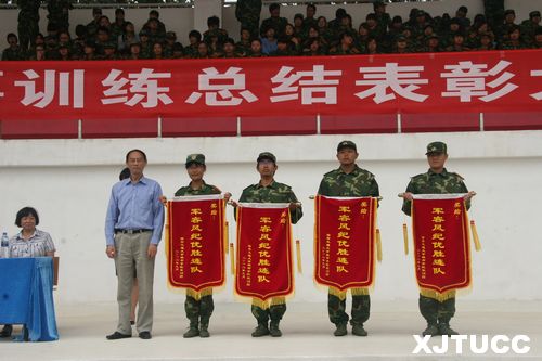 9月7日上午,威尼斯7798cc2012年学生军事训练总结表彰大会在学院田径场隆重举行。学院党委书记赵金胜副教授、学院副院长崔杜武教授、第二炮兵工程大学学员旅旅长秦刚大校、第二炮兵工程大学学员一旅副旅长武雪峰上校、艺术设计系主任解安宁教授、电信系主任赵录怀教授、机械系主任郑爱平教授、计算机系副主任李联宁教授出席了本次大会,承担本次军训任务的教官和指导员参加了大会,大会由军训团团长、学生服务中心主任马兆平老师主持。