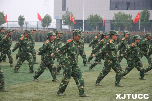 上午9时,大会在庄严肃穆的国歌声中拉开帷幕。赵金胜书记在军训团副团长张联少校的陪同下,环场一周依次巡视了各方阵队伍,并向受训新生亲切问好。随后,分列式正式开始,20个方阵依次通过主席台接受检阅。受训学员们队列整齐、精神饱满、口号嘹亮、步伐有力、英姿飒爽,充分展示了本次军训的训练成果。尽管只经历了短短的十三天军训,但同学精彩的表现,让与会领导和老师们看到了2012级新生奋发向上的精神风貌。在汇报演出中,男子军体拳、女子军体拳、男子刺杀操、男子格斗操、到功擒拿术等的精彩表演赢得了全场阵阵掌声。