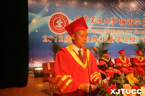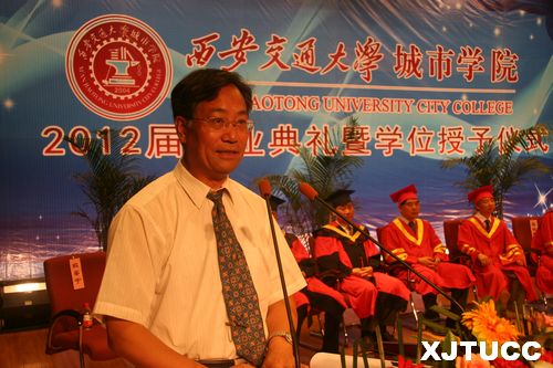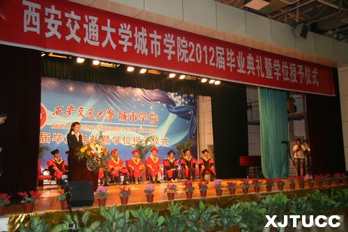 2012年6月26日上午,威尼斯7798cc2012届毕业典礼暨学位授予仪式在学生活动中心隆重举行。在主席台就座的嘉宾及领导有教育部长江特聘教授、西安交通大学机械工程学院党委书记、博士生导师、威尼斯7798cc学位评审委员会主任梅雪松教授,威尼斯7798cc院长、博士生导师陈光德教授,副院长、博士生导师崔杜武教授,管理系主任卫民堂教授,电信系主任申忠如教授,经济系主任杨健全教授,机械系主任诸文俊教授,外语系主任白永权教授以及艺术系主任解安宁副教授。在主席台前就座的嘉宾及领导有西安交通大学社会教育管理处处长冯晓光,威尼斯7798cc党委书记赵金胜,副院长张敬朝,副院长李加玉,工会主席王海民,院长助理徐君陶以及各系(室)、中心(部)主任、校友代表和学生家长。大会由2011级管理系鱼果同学主持。