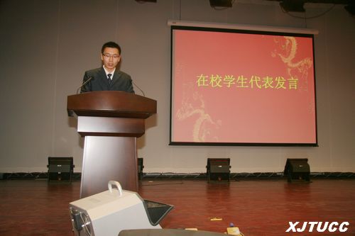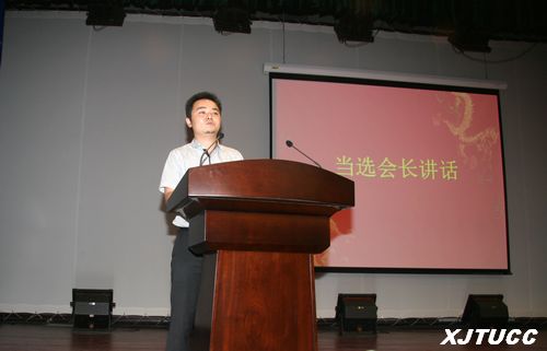 授牌之后,当选会长张兆鹏发表了讲话,感谢母校和校友们对他的信任,并表示将不辜负大家的信任和期盼,努力加强校友之间的联系与沟通,一如既往地关注母校的建设与发展,用实际行动回报母校。在校生代表王巨伟同学也在发言中表示将以学长学姐为榜样,争取以优异的成绩回报母校。