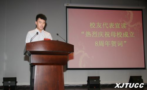 首先,校友代表霍鹏向母校成立8周年表示了热烈祝贺。他说,在母亲节这个特殊的日子重返母校,参加校友会成立大会,同时为母校8周年庆生,深感荣欣。饮水思源,师恩难忘,他代表所有校友表达了对于母校领导、老师谆谆教导的感激之情,并表示在以后的日子里将会一如既往地关注和支持母校的发展。