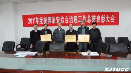 会上,副院长崔杜武、工会主席王海民、院长助理徐君陶为获得2011年度综合治理工作先进单位的机械系、外语系和图书馆颁发了奖牌。